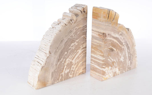 Sebbene visivamente simili, i fermalibri in legno pietrificato sono molto diversi dai classici fermalibri in pietra naturale. Il legno fossile è un materiale raro, ottenuto da un processo di fossilizzazione millenario che conserva le venature originali del legno trasformandolo in pietra. Rispetto ad altri materiali lapidei, il legno pietrificato ha una texture più calda e organica, risultando perfetto per chi cerca oggetti di design per la casa naturali e sostenibili.