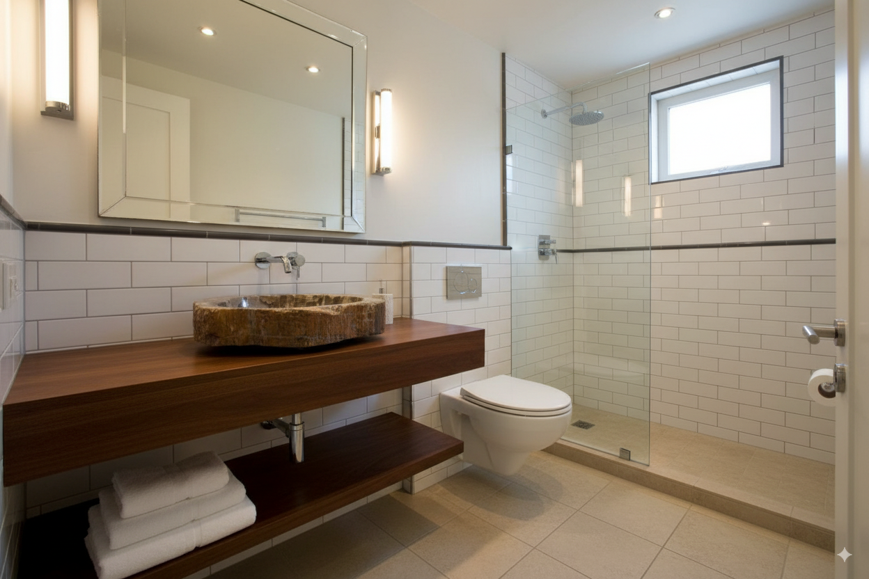 Il lavandino in pietra o legno fossile per il bagno deve essere appoggiato su una superficie orizzontale ben stabile (mensola in muratura, legno spesso o piano in marmo).