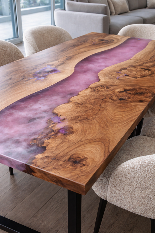 L 150cmPrezzo di listino €3.700,00 EURPrezzo di listinoPrezzo unitario / perPrezzo scontato €3.700,00 EURTavolo da Pranzo Pink River in Ulivo Massello e Resina Rosa Quarzo Semiopaca