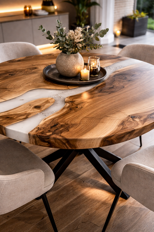L 40cm, P 20cmPrezzo di listino €120,00 EURPrezzo di listinoPrezzo unitario / perPrezzo scontato €120,00 EURTavolo da Pranzo in Legno di Ulivo Massello con Resina Bianca Opaca