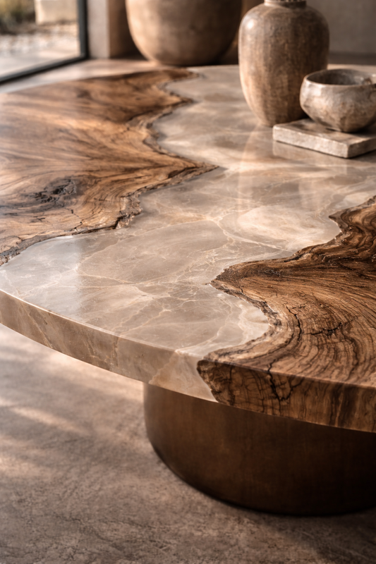 Sì! I nostri tavolini per il salotto di design in legno fossile hanno la resistenza della pietra mantenendo le venature naturali. Perfetti come tavolini basso per il salotto.