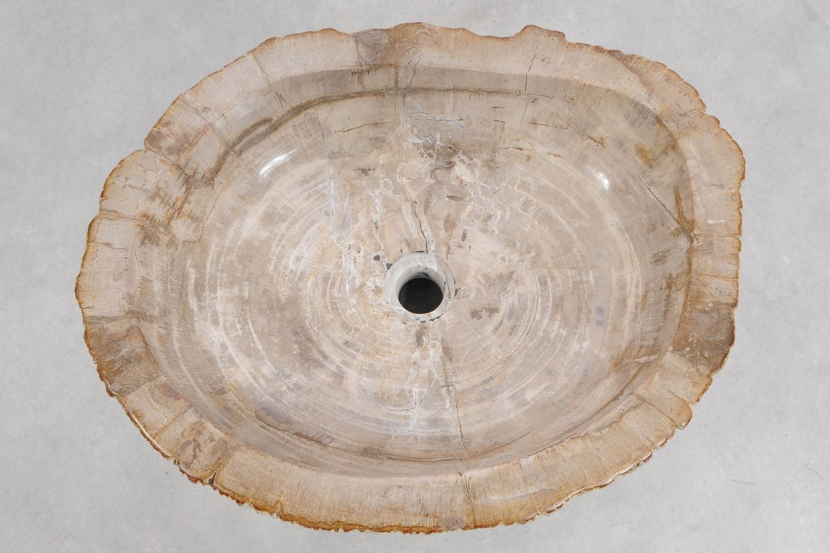 Questo lavabo da bagno in legno fossile pietrificato è ricavato da un albero vissuto milioni di anni fa. Grazie al rivestimento in cera, questo lavandino d'appoggio richiede pochissima manutenzione e dona un tocco autentico e naturale all’arredo del tuo bagno.