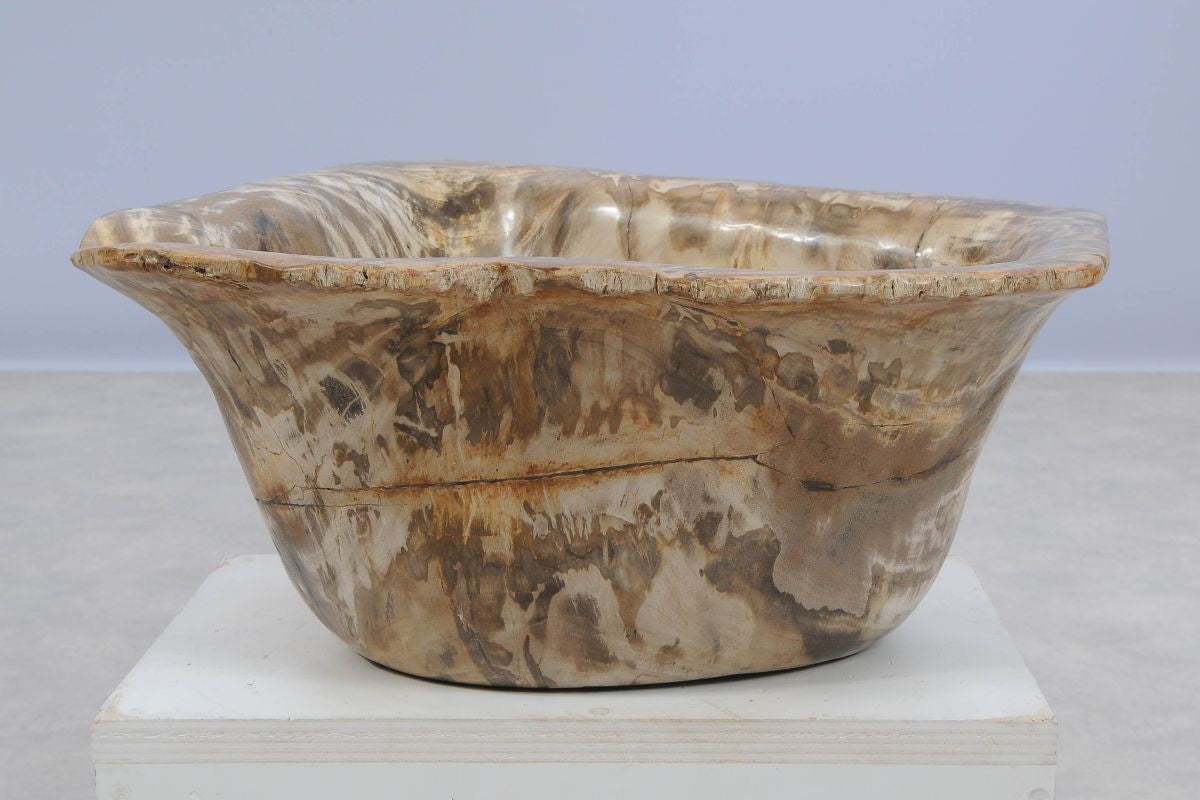 Questo lavabo da bagno in legno fossile pietrificato è ricavato da un albero vissuto milioni di anni fa. Grazie al rivestimento in cera, questo lavandino d'appoggio richiede pochissima manutenzione e dona un tocco autentico e naturale all’arredo del tuo bagno.