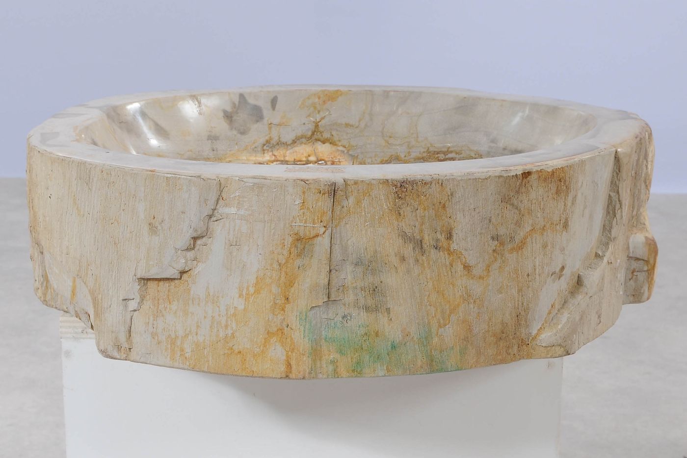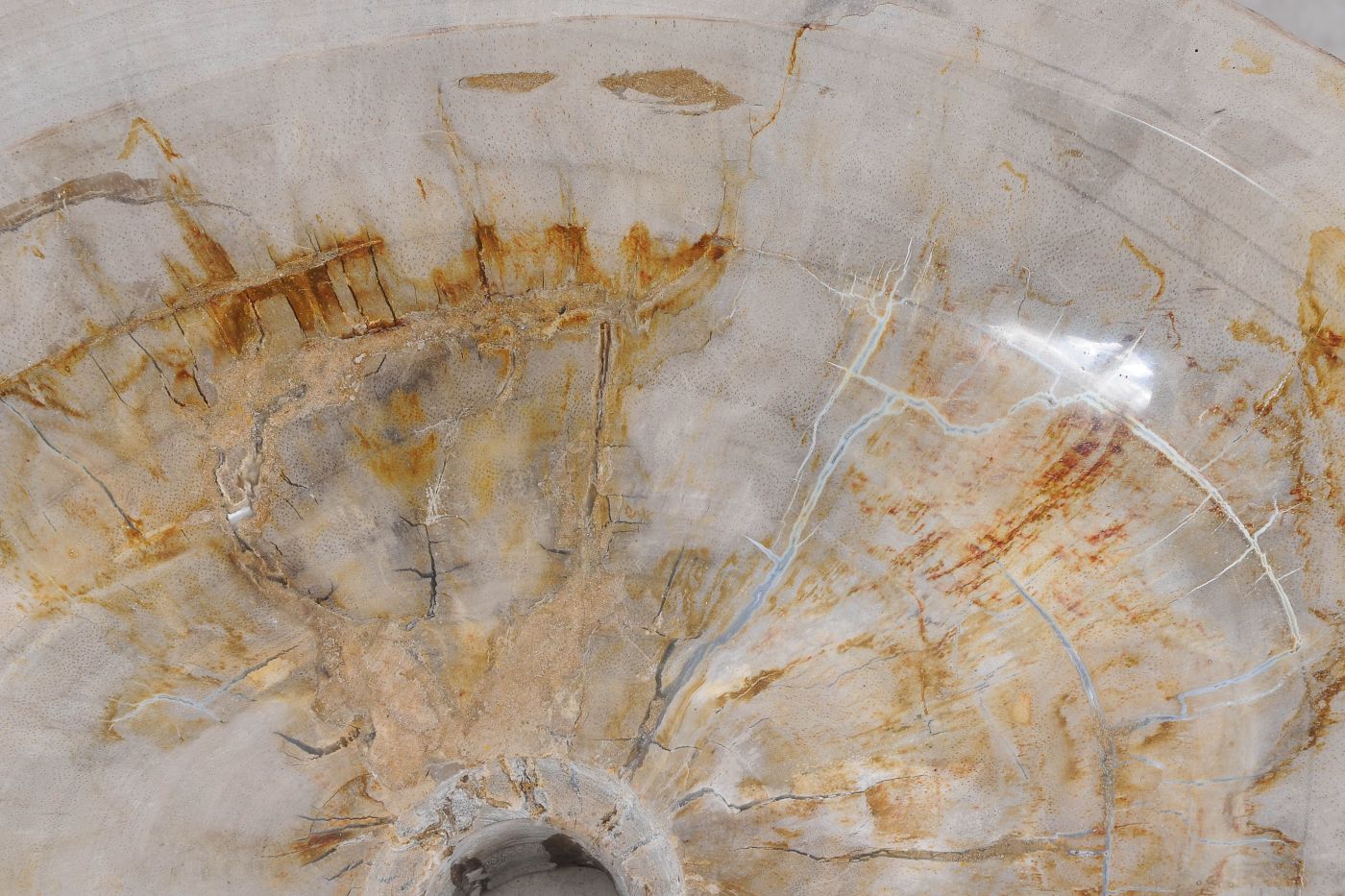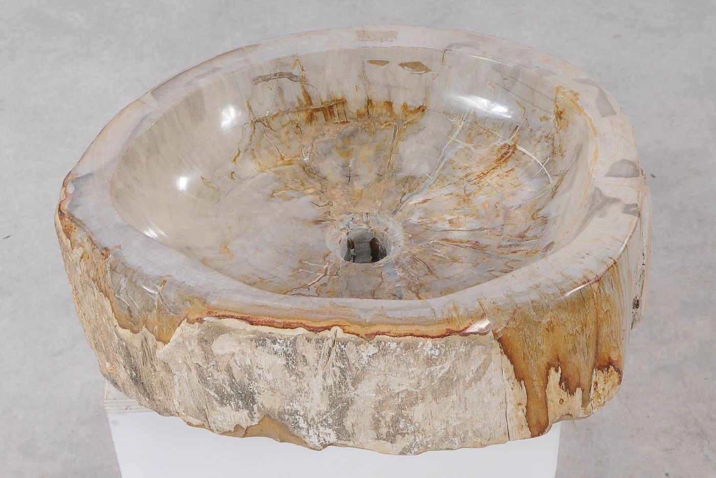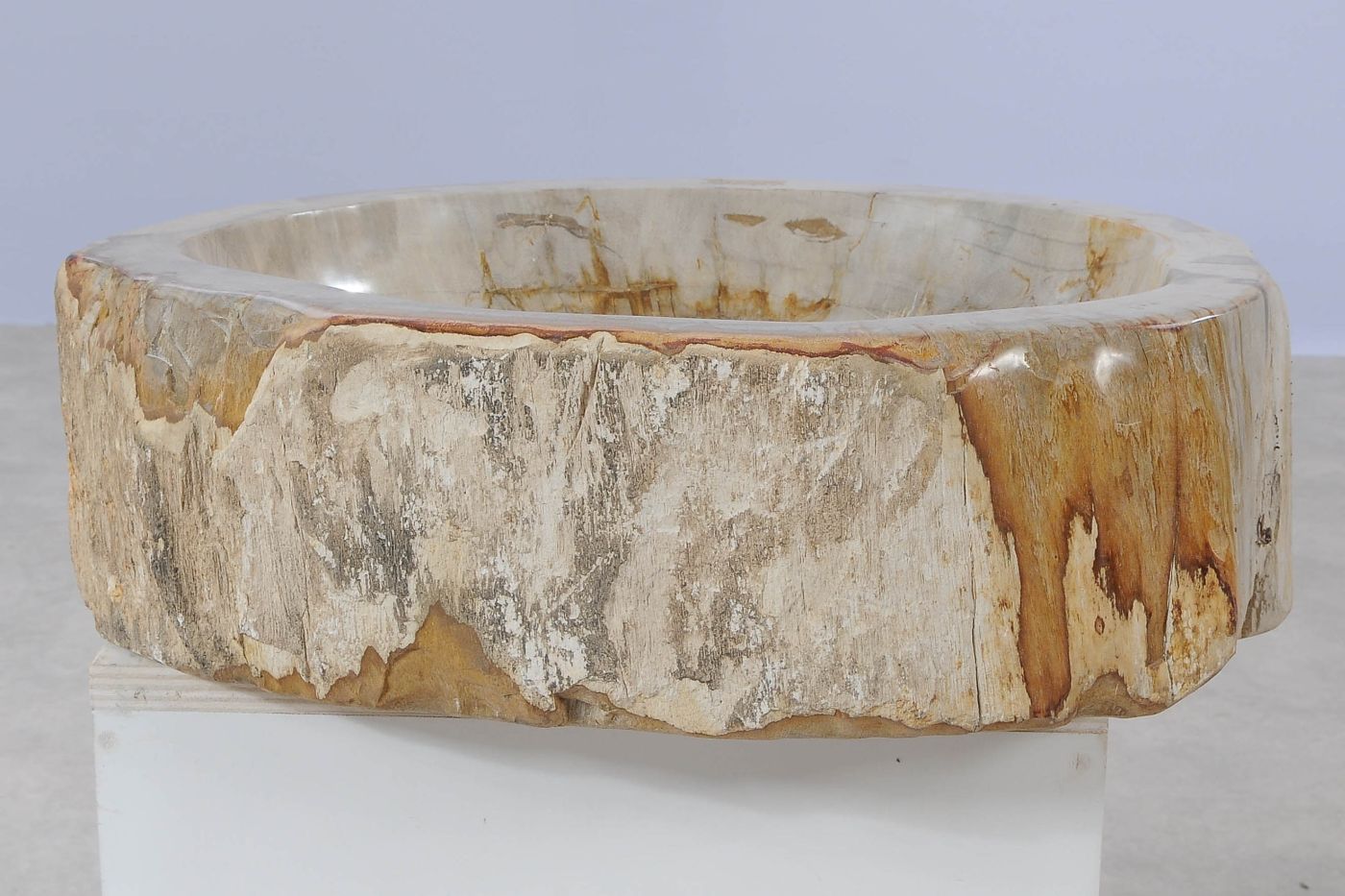 Questo lavabo da bagno in legno fossile pietrificato è ricavato da un albero vissuto milioni di anni fa. Grazie al rivestimento in cera, questo lavandino d'appoggio richiede pochissima manutenzione e dona un tocco autentico e naturale all’arredo del tuo bagno.