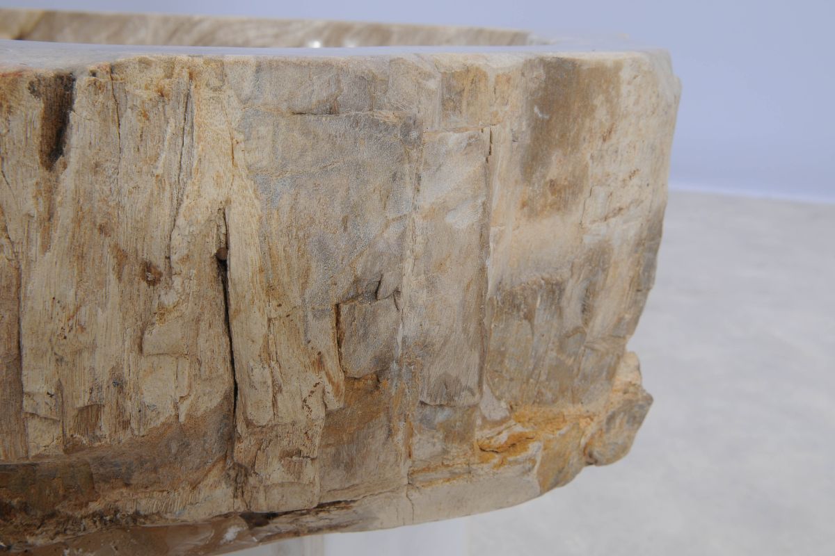 Questo lavabo da bagno in legno fossile pietrificato è ricavato da un albero vissuto milioni di anni fa. Grazie al rivestimento in cera, questo lavandino d'appoggio richiede pochissima manutenzione e dona un tocco autentico e naturale all’arredo del tuo bagno.