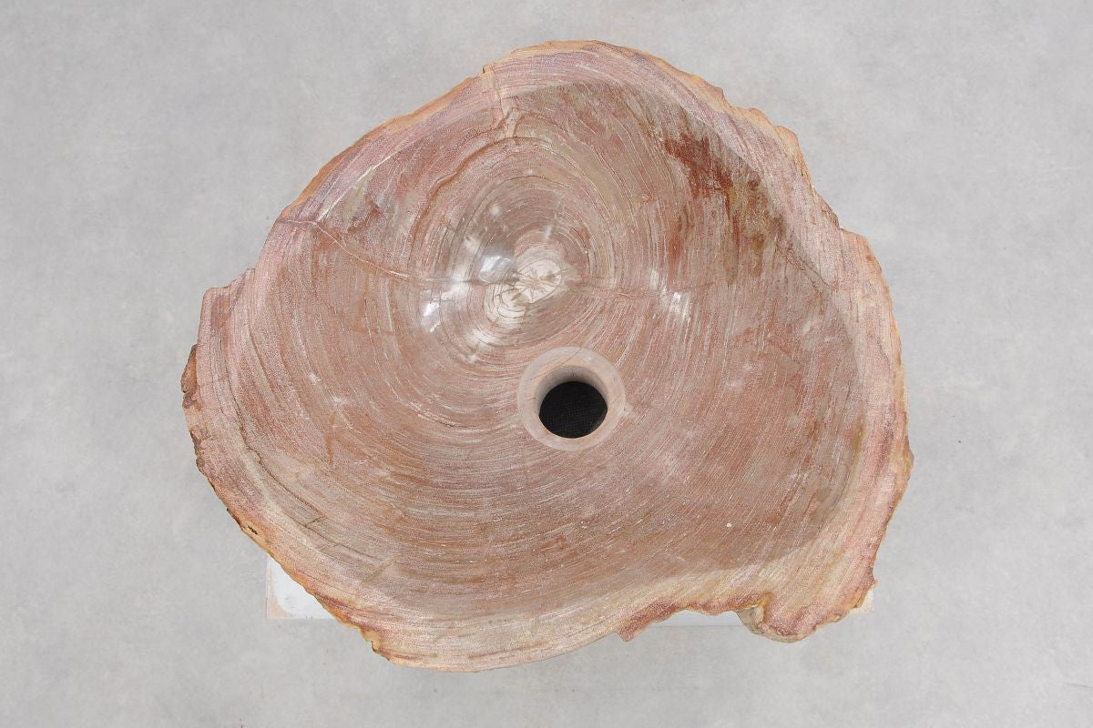 Questo lavabo da bagno in legno fossile pietrificato è ricavato da un albero vissuto milioni di anni fa. Grazie al rivestimento in cera, questo lavandino d'appoggio richiede pochissima manutenzione e dona un tocco autentico e naturale all’arredo del tuo bagno.