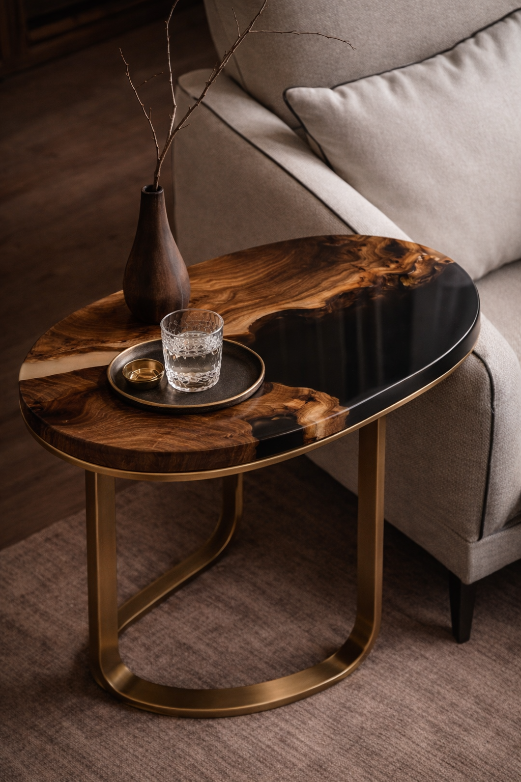 Tavolino da Salotto Halo in Rovere Massello e Resina Epossidica Nera
