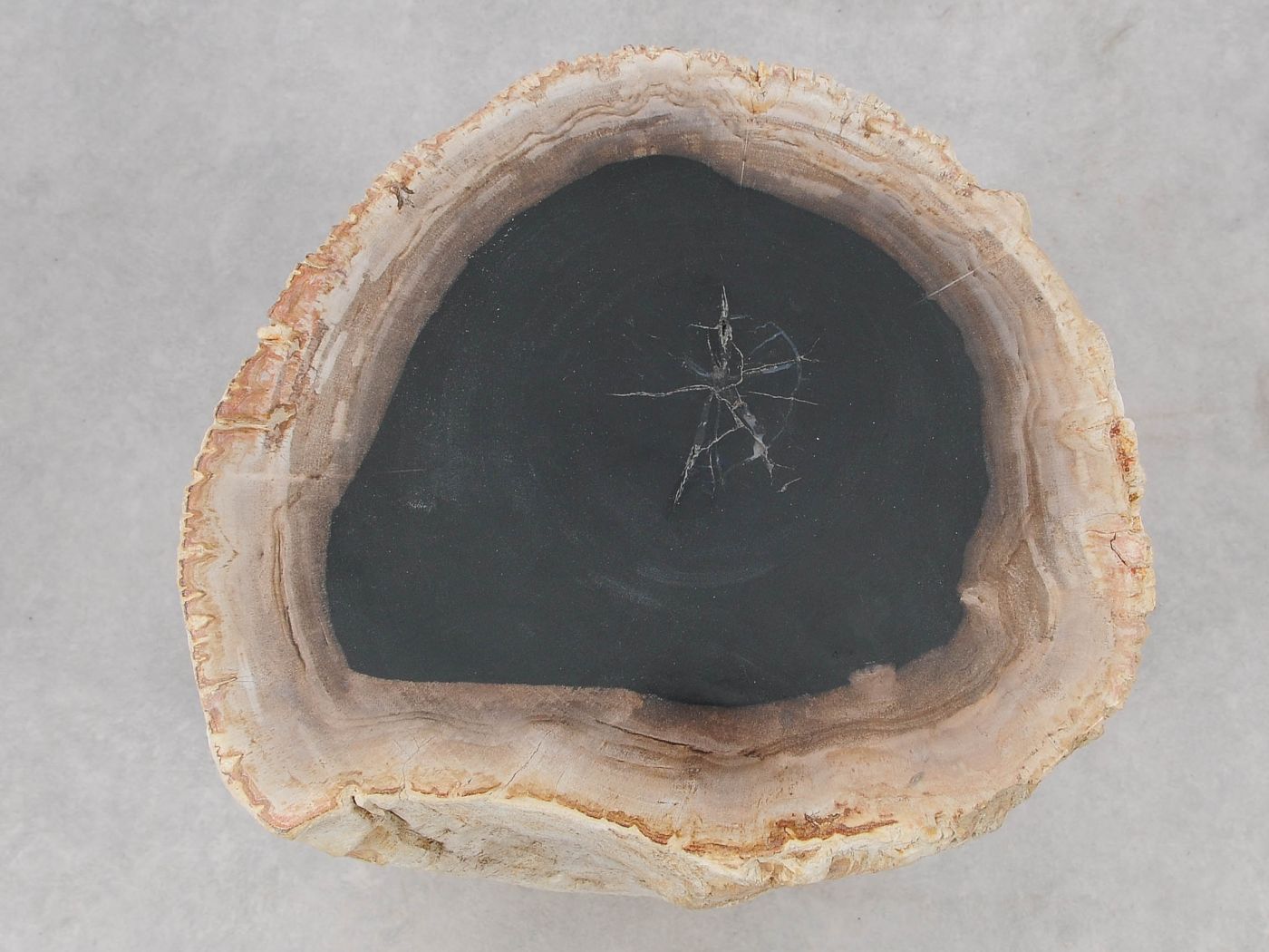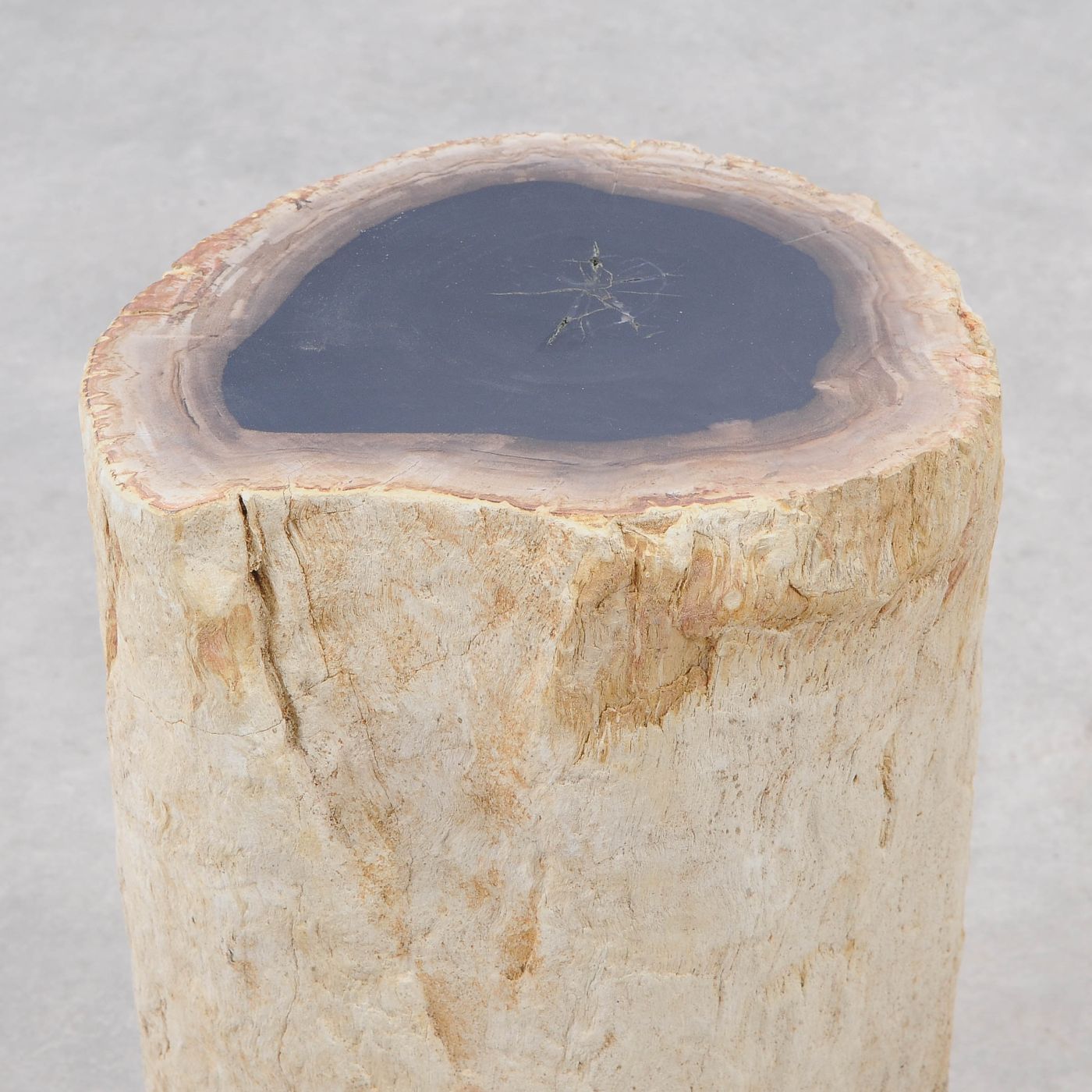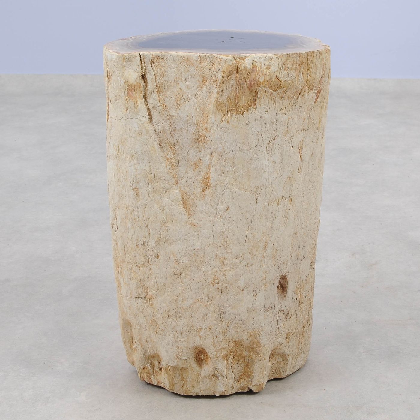Tronco in legno pietrificato, utilizzabile come tavolino, sgabello, comodino. Lavorato e lucidato per esaltarne la texture e le venature naturali, ogni pezzo è unico per colori e sfumature.