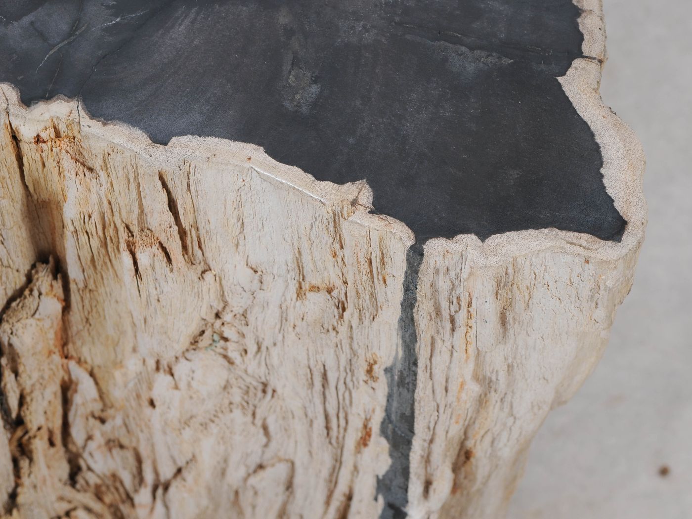 Tronco in legno pietrificato, utilizzabile come tavolino, sgabello, comodino. Lavorato e lucidato per esaltarne la texture e le venature naturali, ogni pezzo è unico per colori e sfumature.