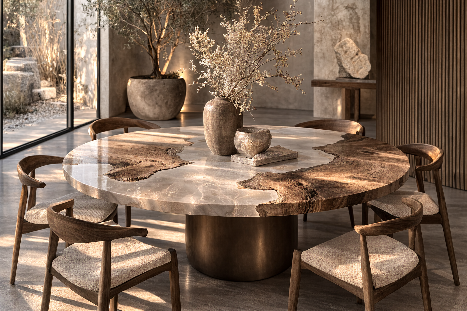 Ogni pezzo unico, scolpito nel legno fossile, trasforma lo spazio in un...