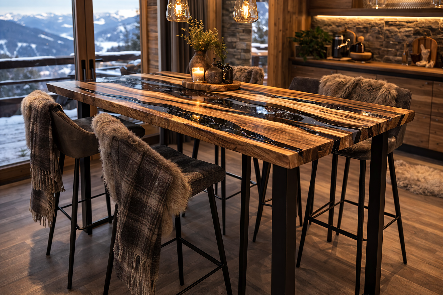 Tavolo da Pranzo Mountain in Rovere Massello e Resina Nera Fumè